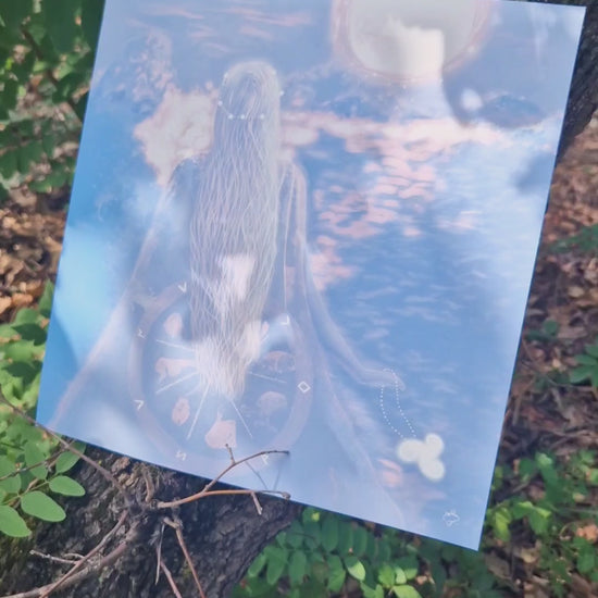 These are museum-quality giclée prints — created using advanced techniques and high-pigment quality inks to faithfully carry every stroke, nuance, subtlety, and depth of the original work. Each print becomes a soulful extension of the artwork, a tiny treasure and magic keeper to live and accompany one’s home and heart. While the process is not inherently eco, it is eco-conscious. It invites a relationship of care and intentionality, moving away from disposables and fast cycles toward trusted stewardship and longevity.
